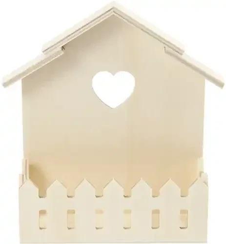 Een schattig huisje met leuk hartjesdetail en hekje.